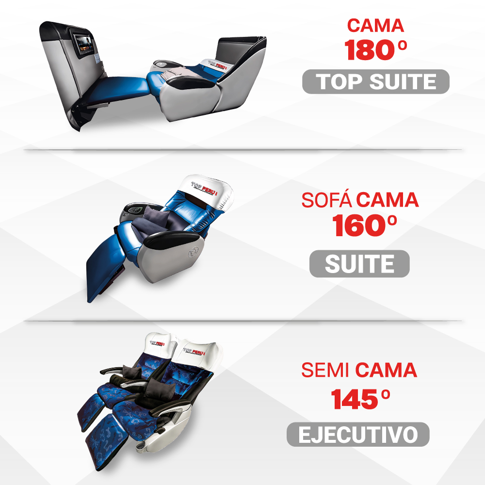 Máximo confort con asientos cama de 180°, pantallas individuales, streaming (entretenimiento a bordo), cargador usb, rastreo satelital, baño sanitizado y aire acondicionado y un servicio exclusivo.